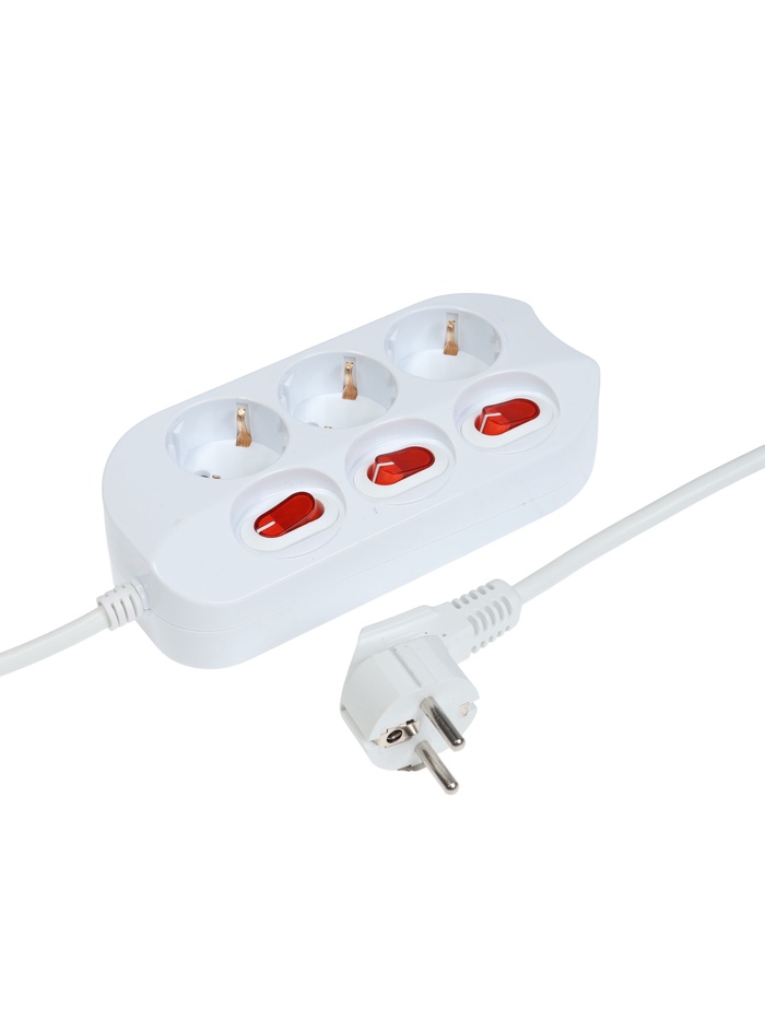 Удлинитель СТАРТ, 3 розетки, 1.5 м, 16 А, ПВС 3×1 мм2, с заземлением, индивидуальные кнопки включения, IP20, белый