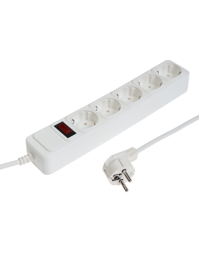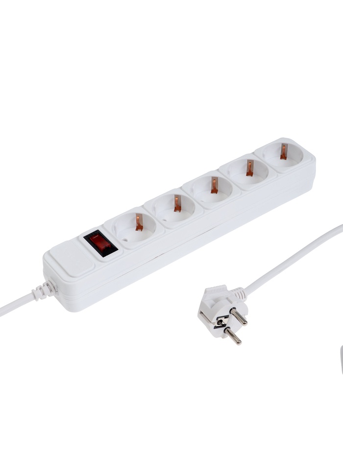 Сетевой фильтр СТАРТ, 5 розеток, 1.5 м, 10 А, ПВС 3×0.75 мм2, с заземлением, с выключателем, IP20, белый