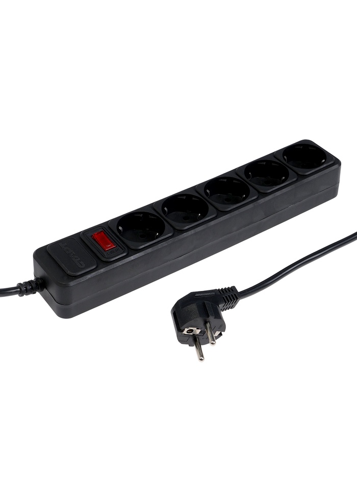 Сетевой фильтр СТАРТ, 5 розеток, 1.5 м, 10 А, ПВС 3×0.75 мм2, с заземлением, с выключателем, IP20, чёрный