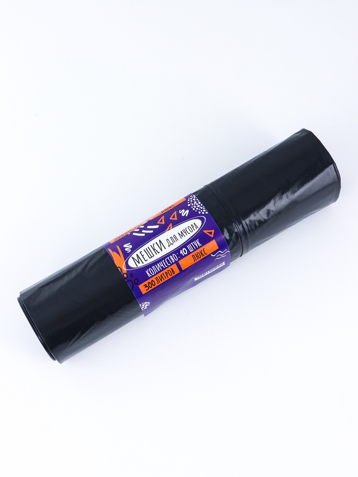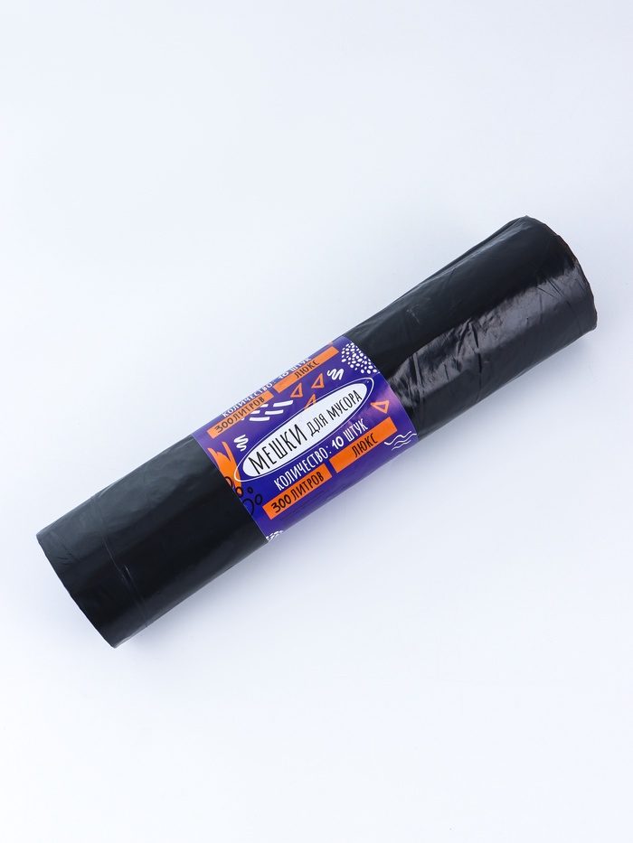 Мешки для мусора в рулоне 300 л, черные, ПВД, толщина 60 мкм, 10 штук