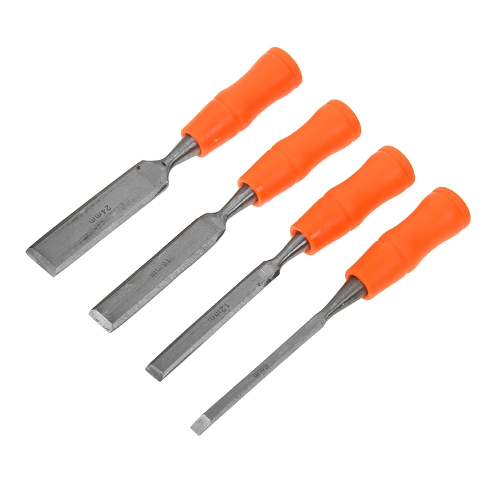 Набор стамесок Sparta, 4 шт, 6-12-18-24 мм, плоские, пластиковые ударные рукоятки
