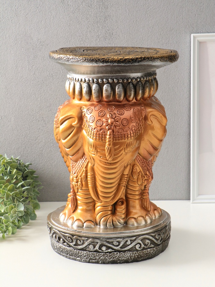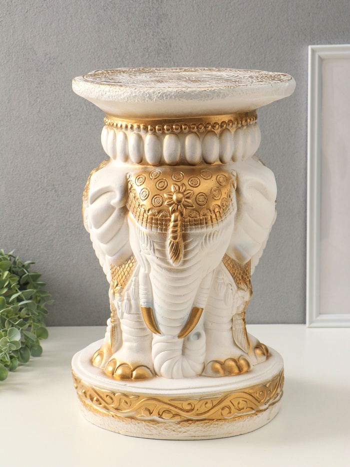 Колонна - тумба "Три слона" перламутр с золотом, 43х30х30 см