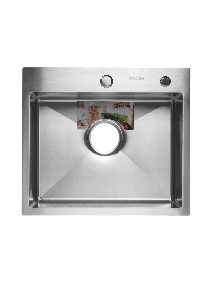 Мойка кухонная AFLORN AF96050, врезная, S=3.0 и 0.8 мм, 60×50×22 см, сифон, сатин