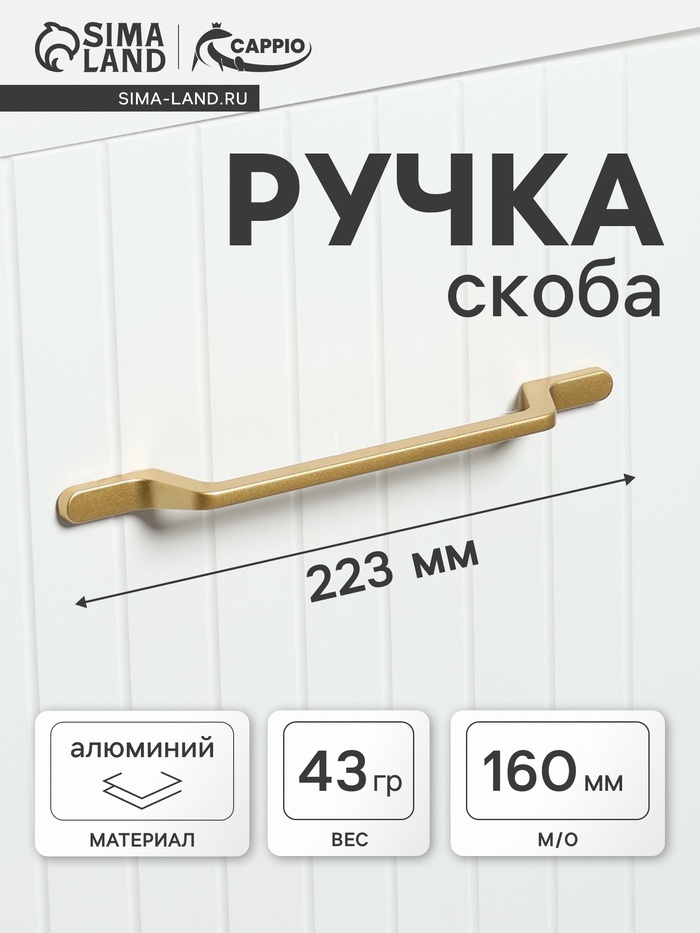 Ручка-скоба CAPPIO RSC023, алюминий, м/о 160 мм, цвет золото