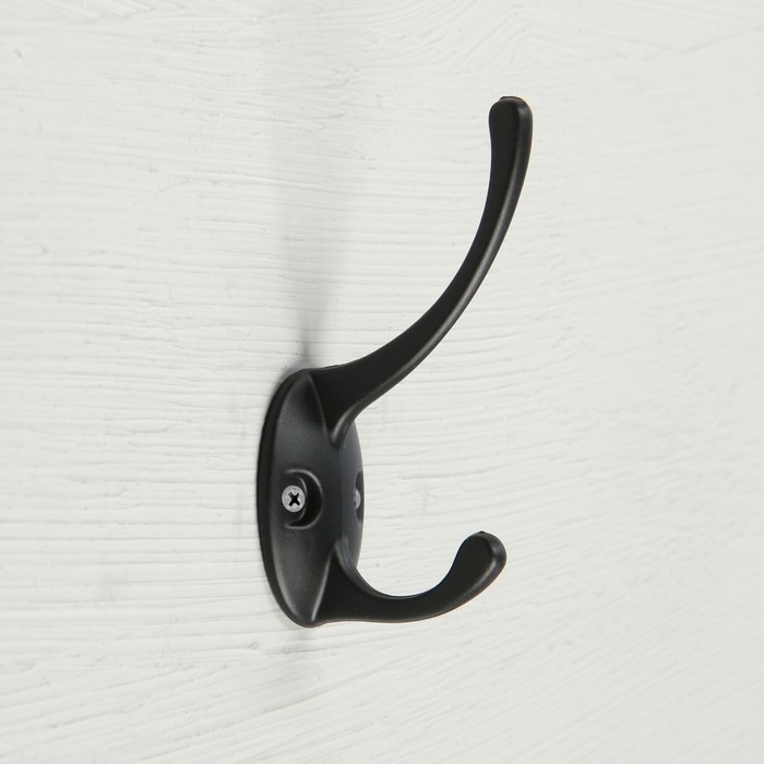 Крючок мебельный ТУНДРА TKD002 LIGHT, двухрожковый, черный, 4 шт.