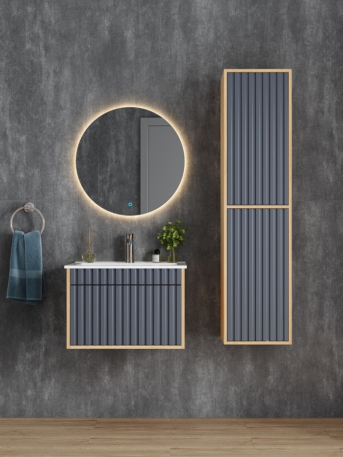 Тумба подвесная Onika Дайлер 60 графит/дуб сонома раковину Бергамо Нова 60 Керамин