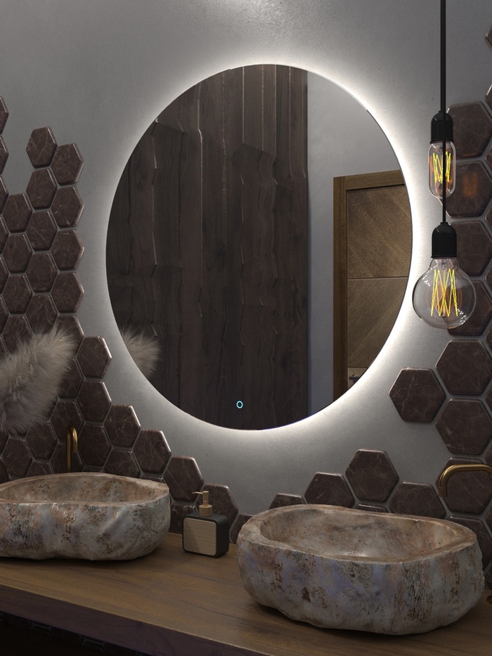 Зеркало настенное круглое в ванную Onika «Сола», с LED – подсветкой, d=60 см