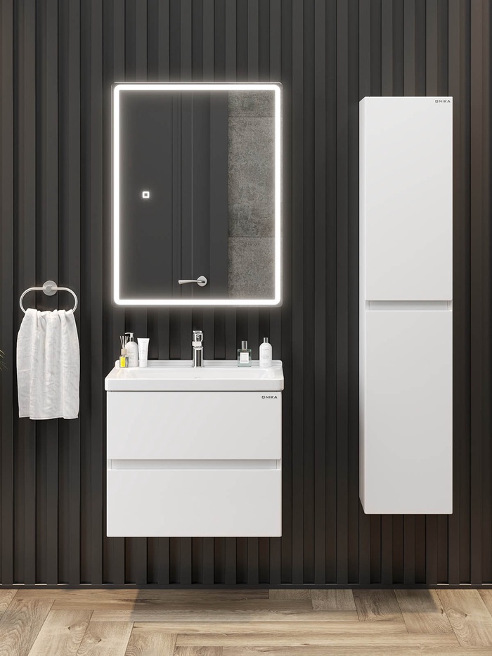 Тумба подвесная Onika Эвада 60 белая раковина Миранда-60 Santek