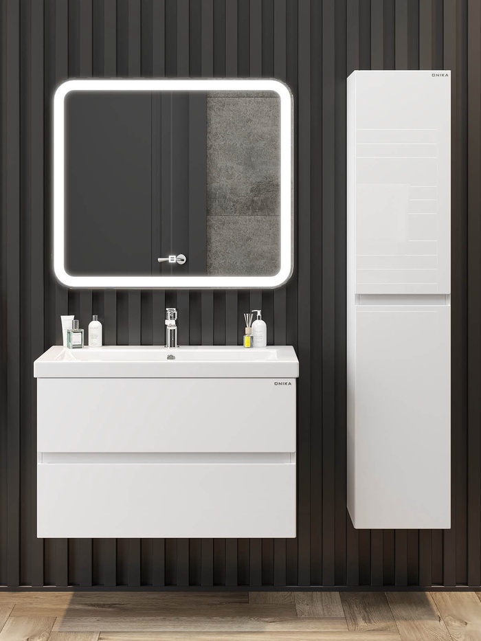 Тумба подвесная Onika Эвада 80 белая раковина Миранда-80 Santek