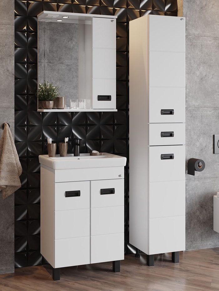 Шкаф-зеркало Onika Балтика Black 58 белый, правый, с подсветкой