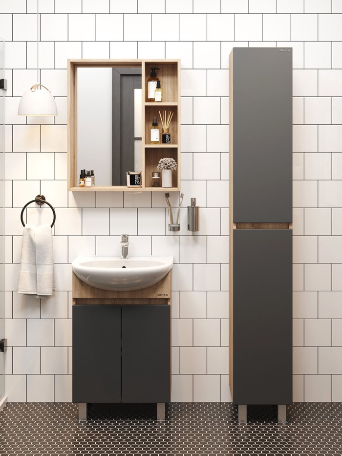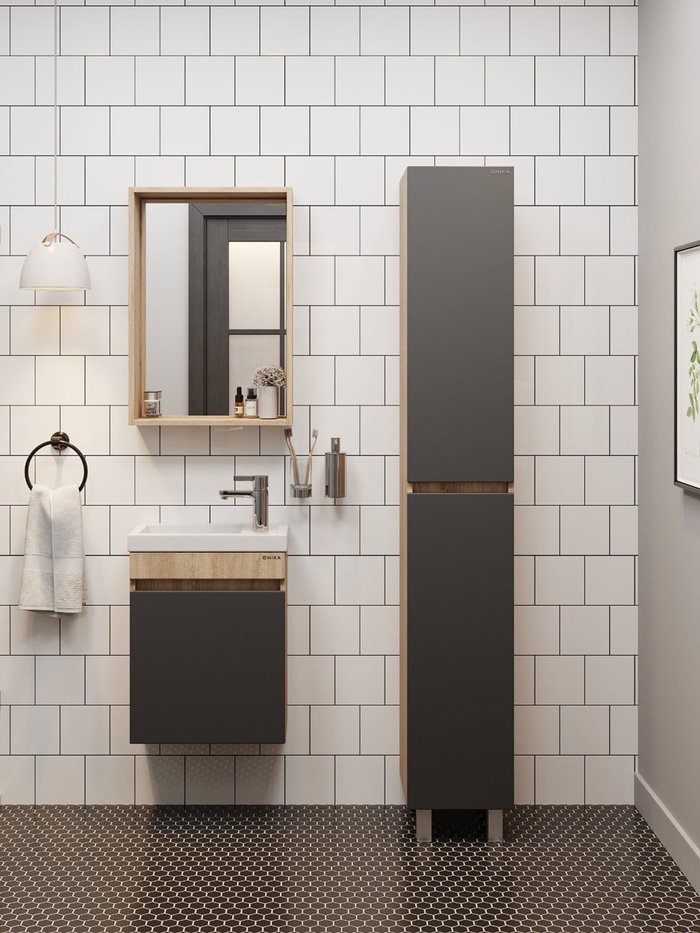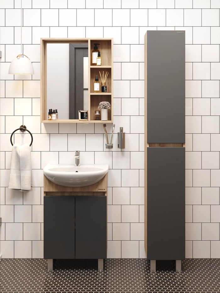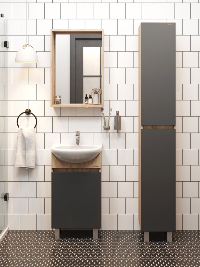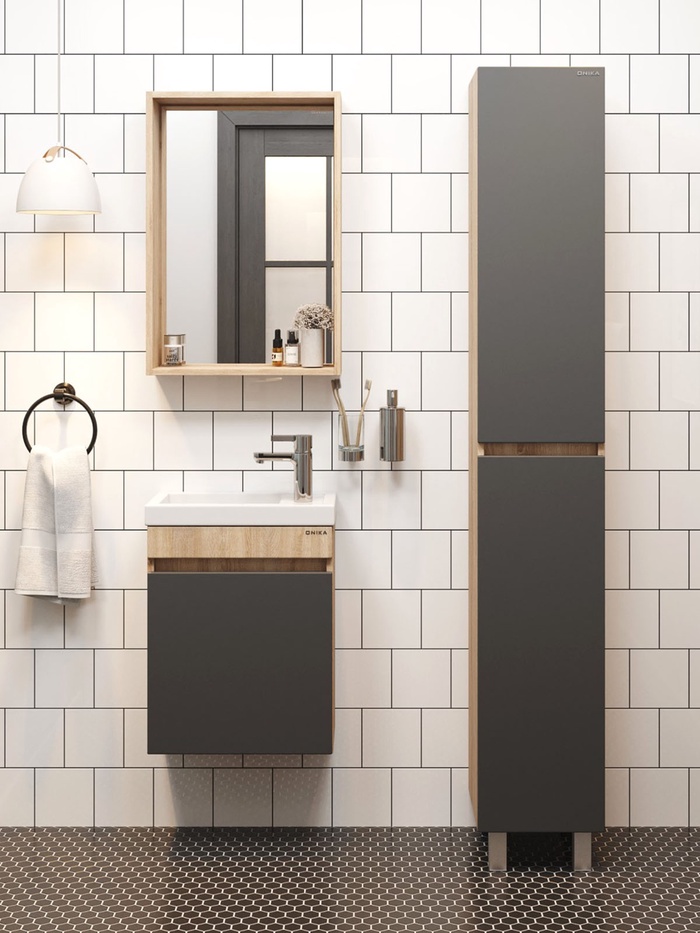 Тумба подвесная, Onika Милтон 45 серая/дуб сонома раковина Фостер-45 Кirovit