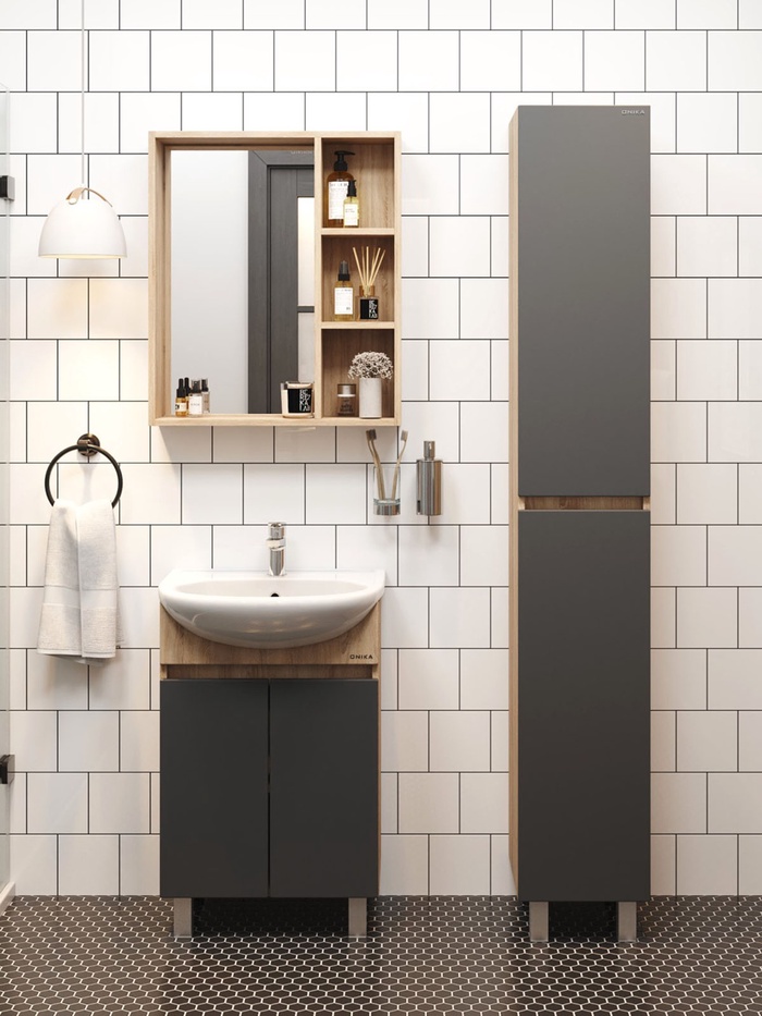 Тумба напольная Onika Милтон 50 серая/дуб сонома раковину Уют-50 Rosa
