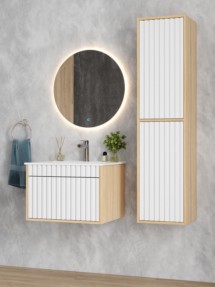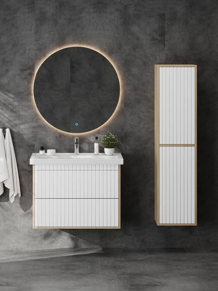 Тумба подвесная Onika Дайлер 60 белая/дуб сонома раковину Бергамо Нова 60 Керамин