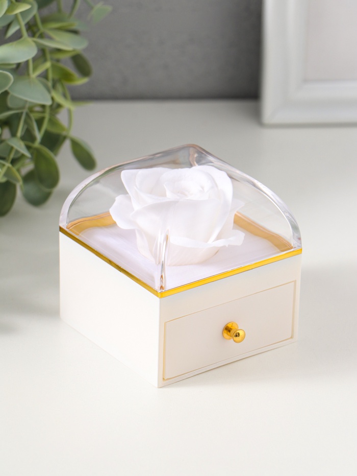 Шкатулка для украшений «Роза в футляре», подарочная, пластик, белая, 6.8×6.8×7.5 см