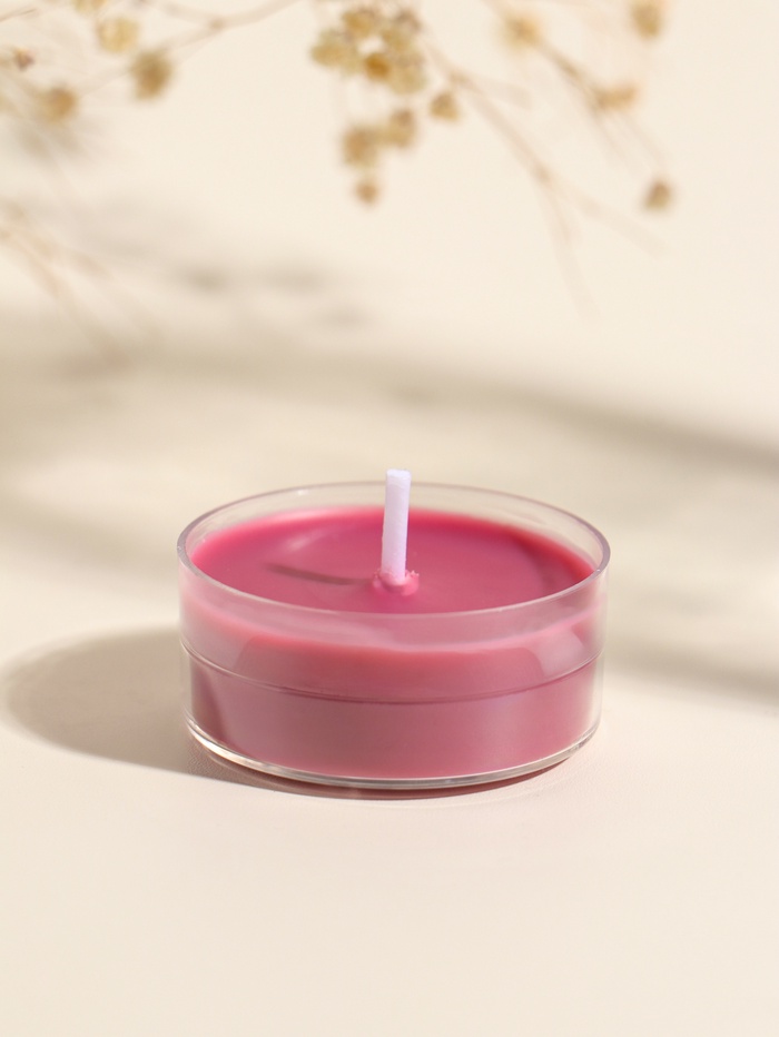Чайная свеча ароматическая «Круглая» красная, цветочный, 3.8×3.8×1.8 см