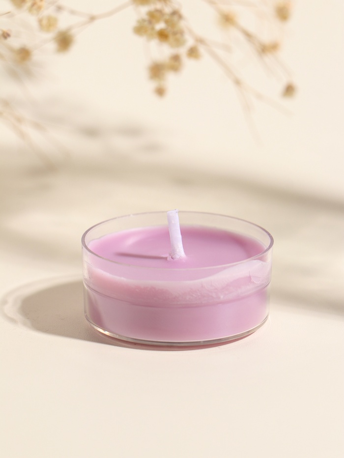 Чайная свеча ароматическая «Круглая» серо-фиолетовая, лаванда, 3.8×3.8×1.8 см
