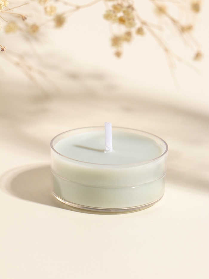 Чайная свеча ароматическая «Круглая» светло-голубая, древесный, 3.8×3.8×1.8 см