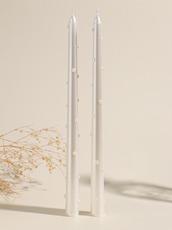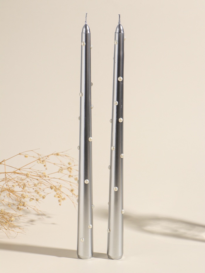 Набор свечей античных, 2.3×30 см, 2 шт. «Серебро и жемчуг», 7.5×33.5×2.5 см