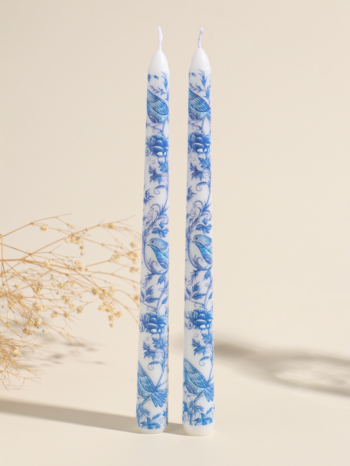Набор свечей античных, 2.2×25 см, 2 шт. «Птица и цветы», сине-белые, 8×28×2.3 см