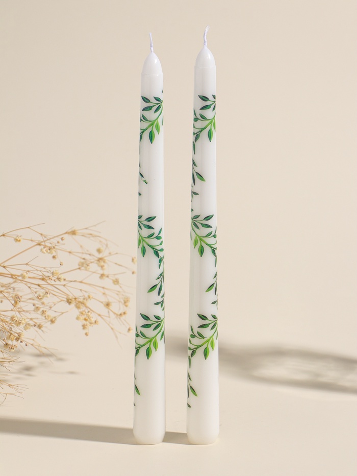 Набор свечей античных, 2.2×25 см, 2 шт. «Оливковые листья», 8×28×2.3 см
