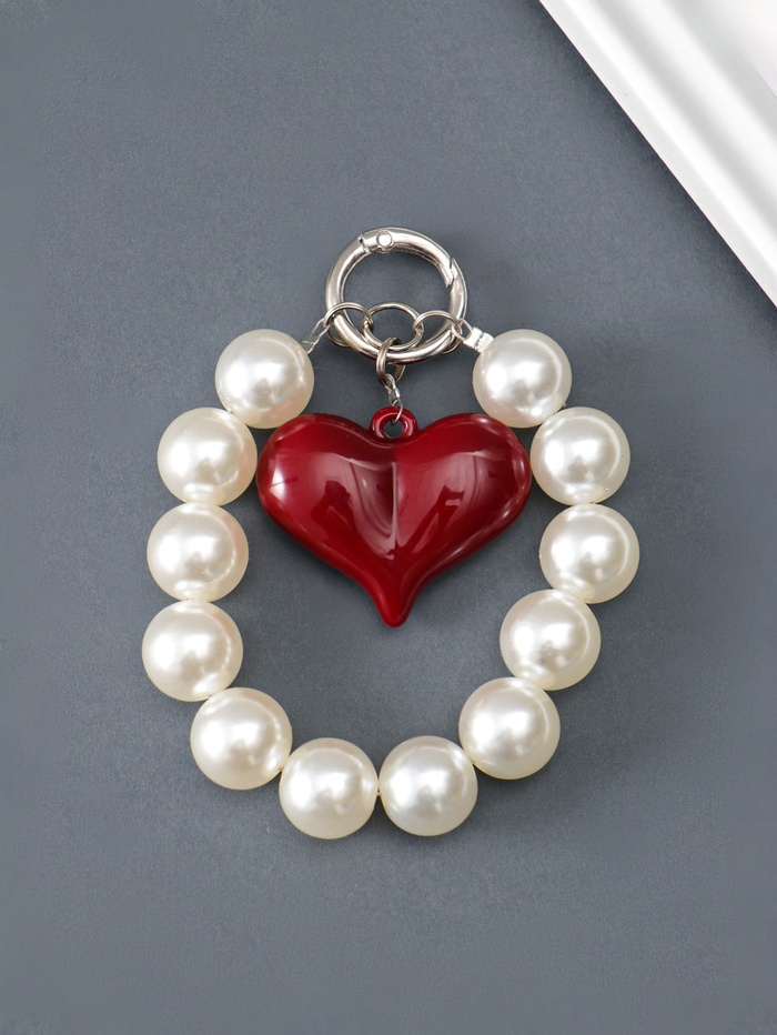 Брелок для ключей на карабине «Жемчужины и сердце», бусины d=1.6 см, сердце, 4.3×3.5 см 14 см