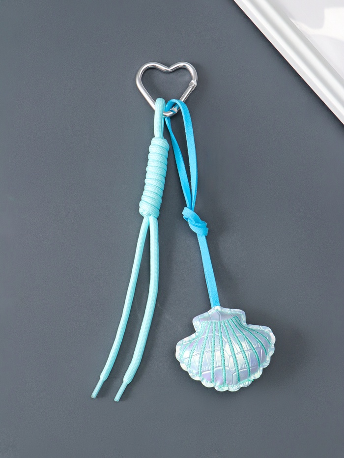 Брелок для ключей на карабине «Морская ракушка», голубой, с узлом, кожзам, текстиль, 22×7×2.3 см