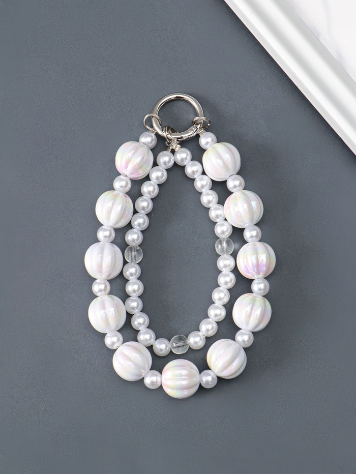 Брелок для ключей на карабине «Две нитки с жемчугом», бусины d=0.8 см и 1.6 см, 12.5×1.6 см