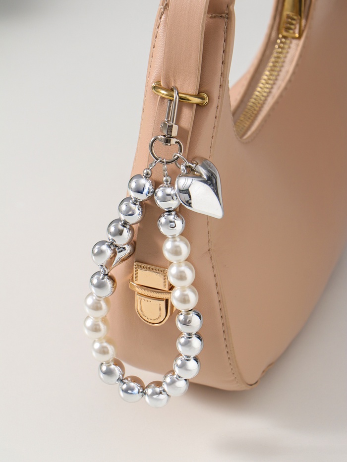 Брелок на карабине "Жемчужная нить с сердцем" серебристо-белый 11х3х1 см