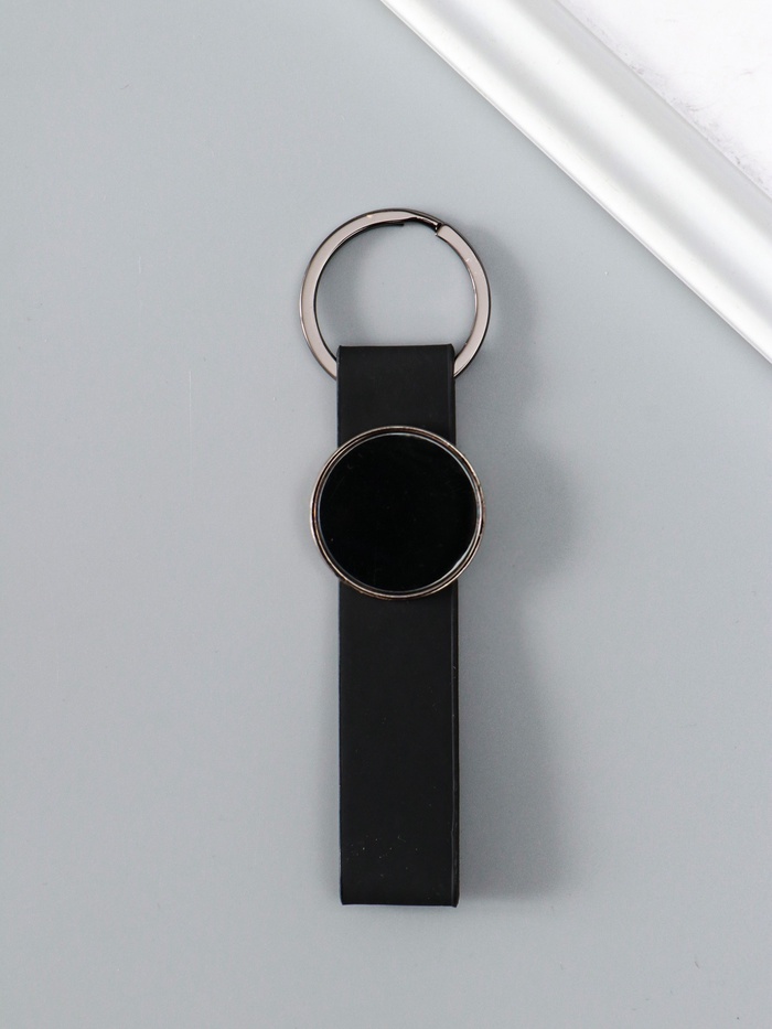 Брелок под нанесение кожзам, металл "Ремешок" размер окна d=2,7 см, чёрный 11,3х3х0,7 см