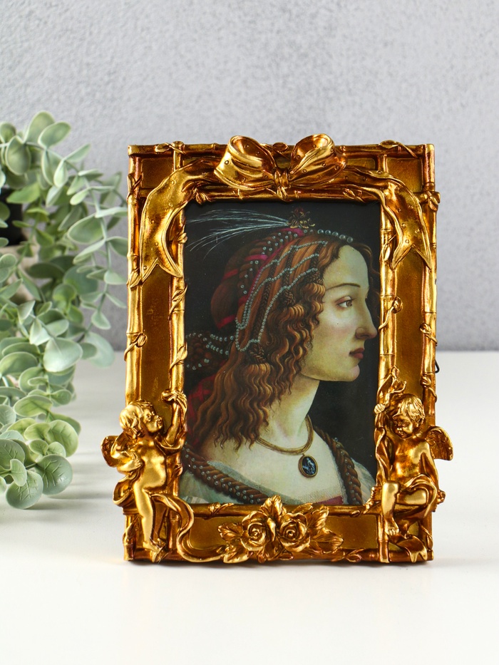 Фоторамка полистоун 10х15 см "Венера" розовая с золотом 15,5х25 см