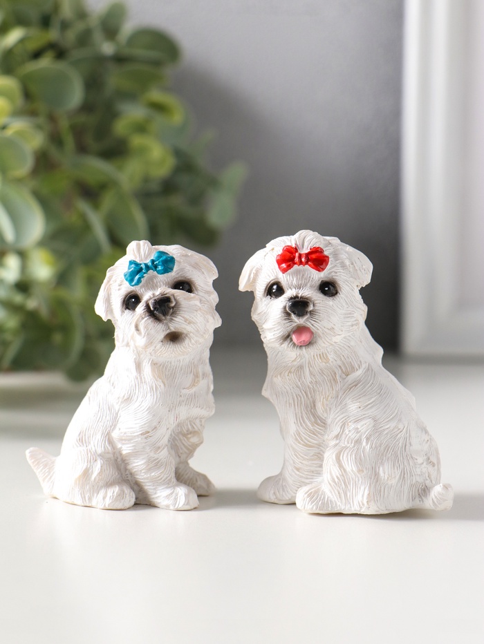 Набор фигурок 2 шт. полистоун «Белые терьеры с бантиками», 3.7×5.2×6.2 см