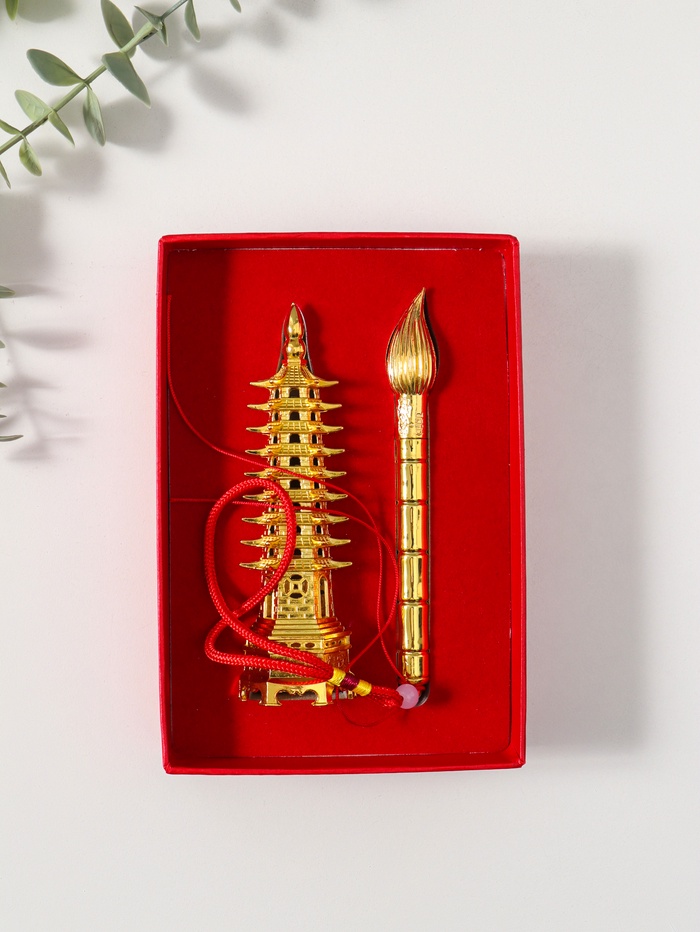 Нэцкэ металл "Пагода литературы" золото набор 2 шт 3,8х3,8х13,5 4х12х17,5 см