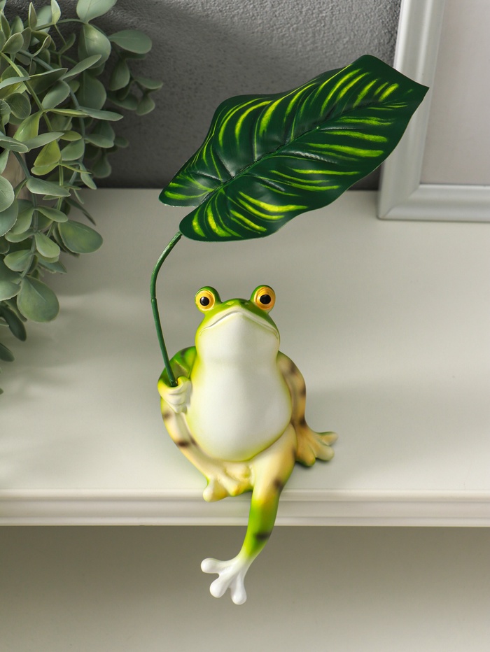 Фигурка настольная полистоун «Лягуха под пальмовым листом», на полку, 5.8×7.5×14.5 см