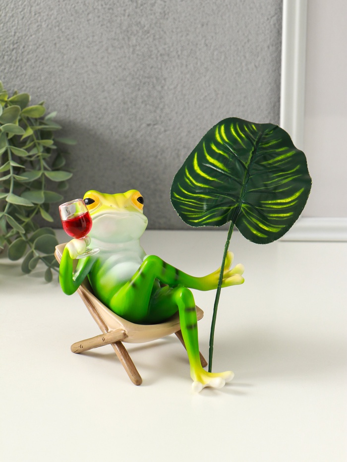 Фигурка полистоун «Лягуха в кресле с бокалом под пальмовым листом», 5.8×7.5×14.5 см