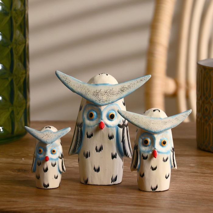 Сувенирный набор «Совы с листьями», 3 шт., 6×14×7 см, дерево