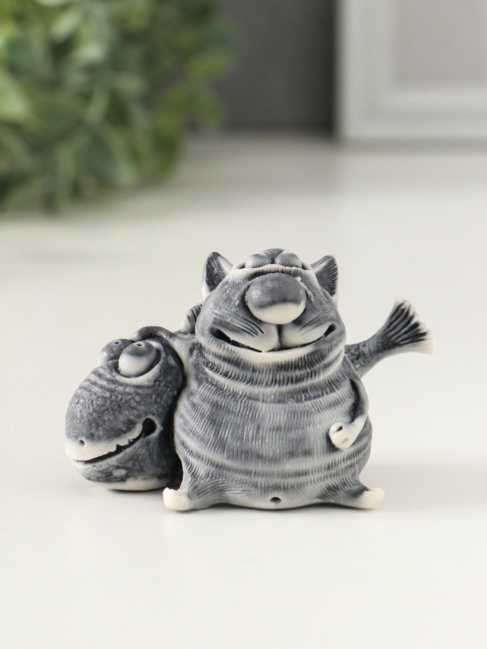 Фигурка «Кот с большой рыбиной», 4.8 см