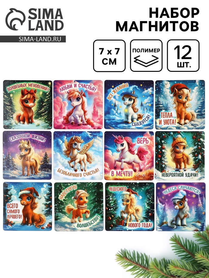 Набор магнитов новогодних «Волшебный Новый Год» полимер 7×7 см 12 шт.