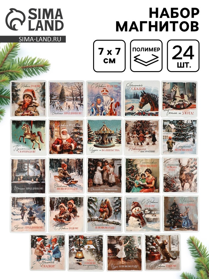 Набор магнитов новогодних «Винтаж» полимер 24 шт.