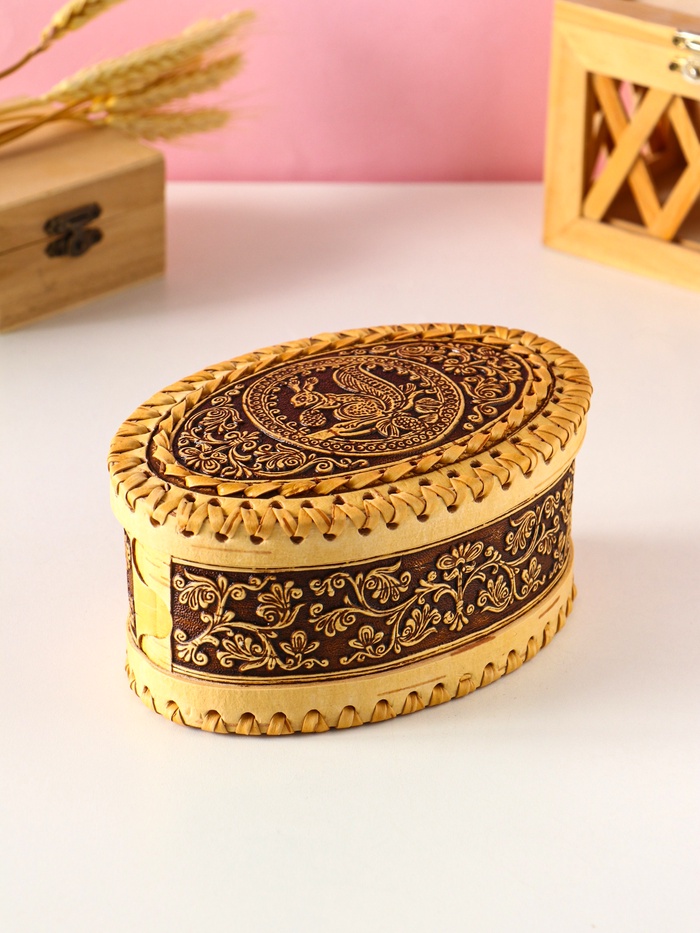 Шкатулка овальная "Маленькая Белочка", 14х9х6см, береста
