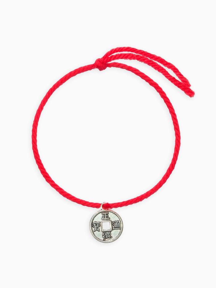 Браслет-оберег «Красная нить» на богатство, монетка, цвет серебро, 35см
