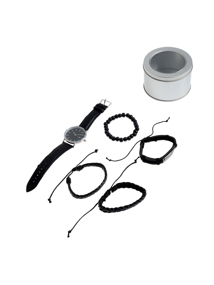 Подарочный набор мужской «Патрон» 2 в 1: наручные кварцевые часы, браслеты