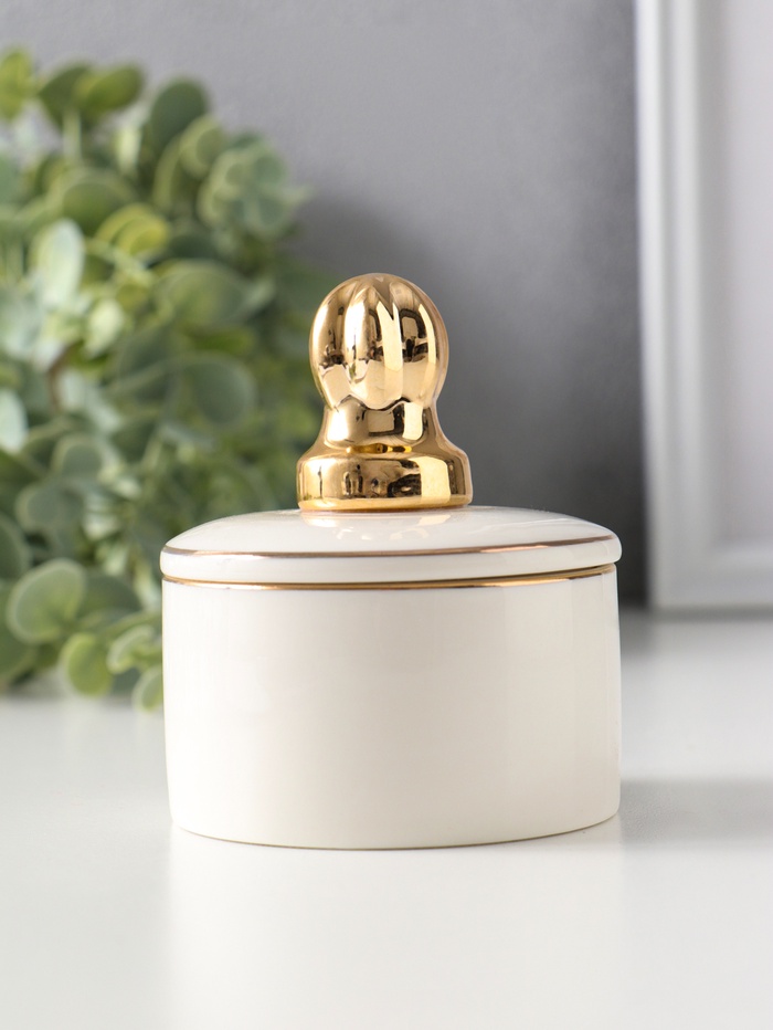 Шкатулка для украшений керамика с золотой линией «Королевская пешка», с крышкой, 7×7×8.5 см