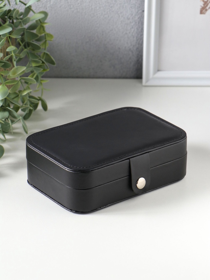 Шкатулка кожзам для украшений "Матовая гладь" чёрная 16,5х11,5х5,5 см