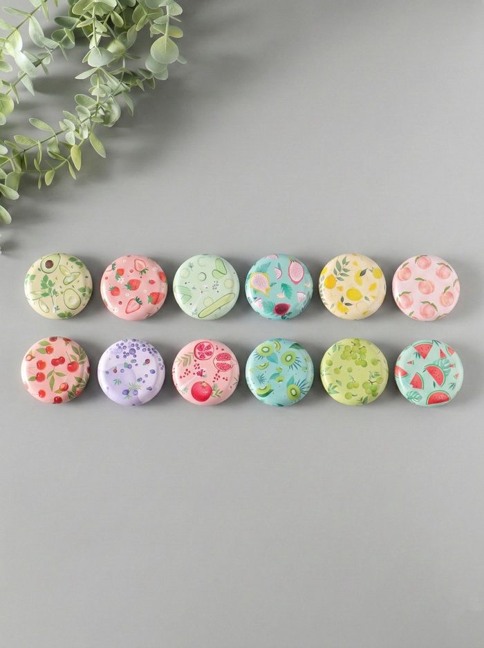 Набор шкатулок для украшений «Фрукты и овощи», 12 шт., мини, металл, круглая, 6.8×6.8×1.7 см