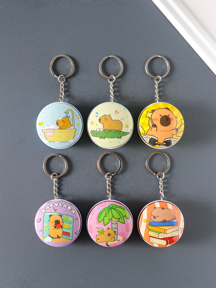 Шкатулка - брелок для ключей на кольце «Капибара», круглая, мини, 4.5×4.5×2 см, МИКС