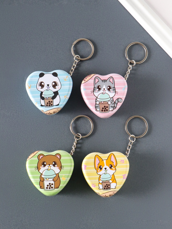 Шкатулка - брелок для ключей на кольце «Зверёк с молочным чаем», сердце, мини, 5×5×2 см, МИКС