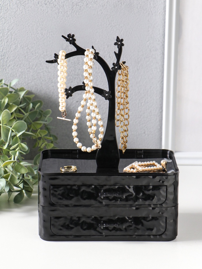 Шкатулка для украшений «Цветущее дерево», 2 яруса, 17.2×10.5×24 см, чёрная