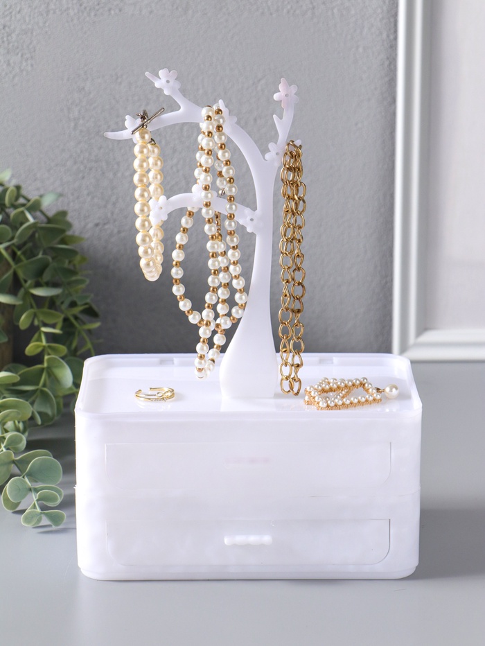 Шкатулка украшений «Цветущее дерево», 2 яруса, 17.2×10.5×24 см, белая