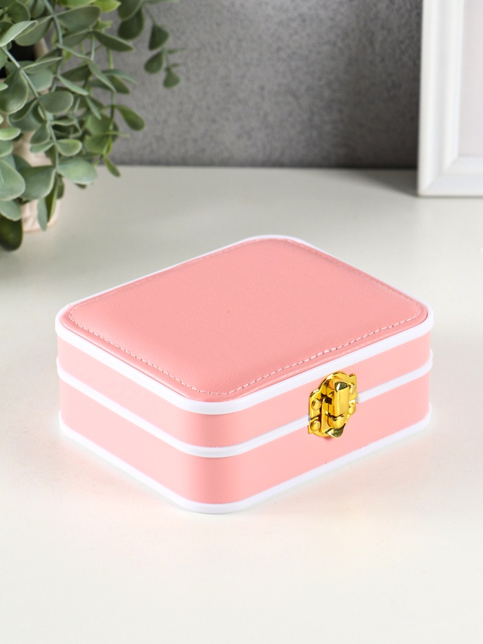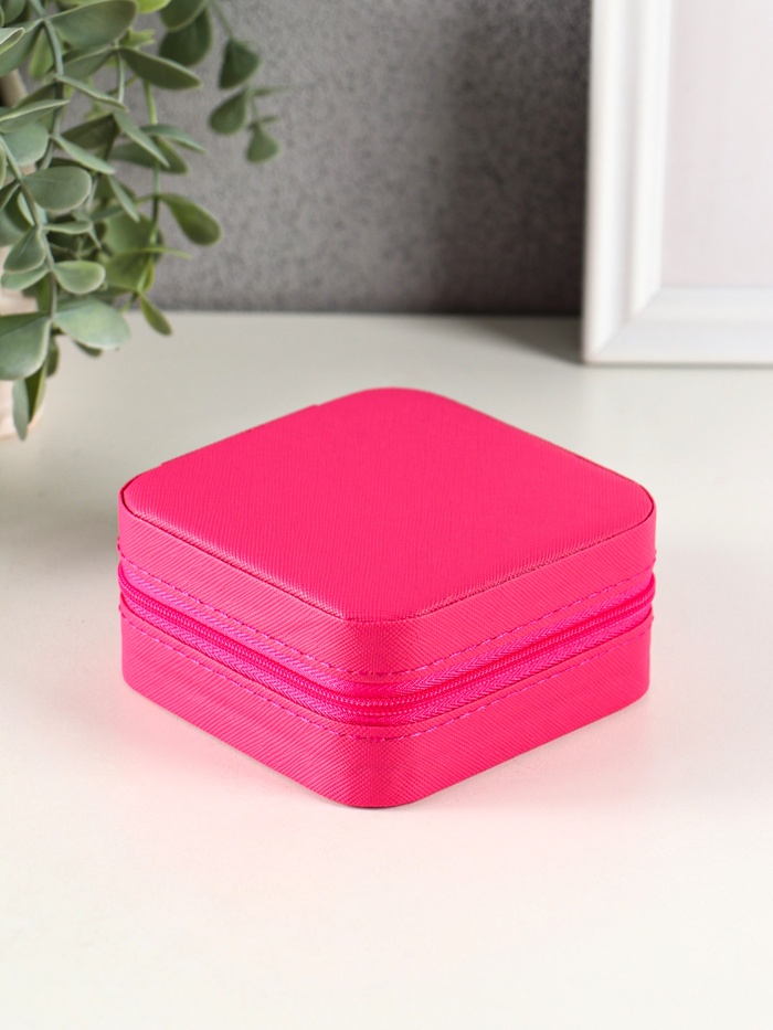 Шкатулка для украшений «Фуксия», кожзам, 4 ячейки, 7 полос, 3 крючка, 10×10×5 см