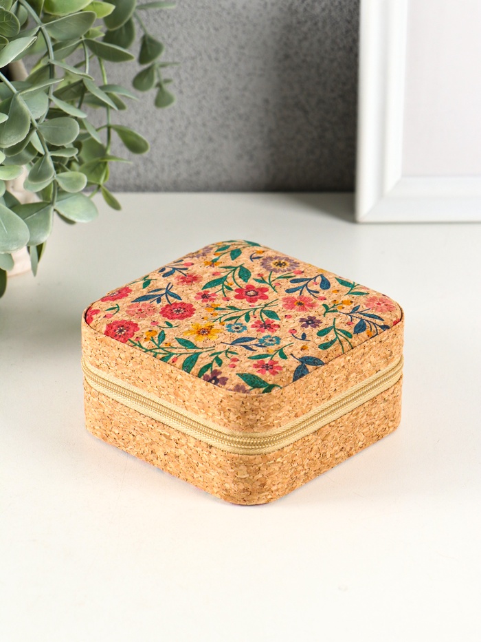 Шкатулка для украшений «Цветочная», пробка, кожзам, 10×10×5 см